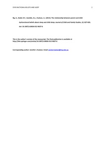 The relationship between parent and child dysfunctional beliefs about sleep and child sleep