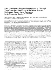 RNA interference suppression of genes in glycosyl transferase families 43 and 47 in wheat starchy endosperm causes large decreases in arabinoxylan content.