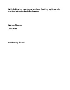 Warren, M. and Solomon, J. (2014) Whistle-blowing by external auditors: seeking legitimacy for the South African audit profession? Accounting Forum, 32 (2). pp. 109-121. ISSN 0155-9982 doi: 10.1016/j.accfor.2013.04.007