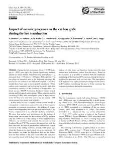 Bouttes, N., Paillard, D., Roche, D.M., Waelbroeck, C., Kageyama, M., Lourantou, A., Michel, E. and Bopp, L. (2012) Impact of oceanic processes on the carbon cycle during the last termination. Climate of the Past, 8 (1). pp. 149-170. ISSN 1814-9324 doi: 10.5194/cp-8-149-2012