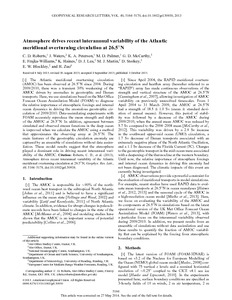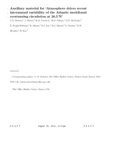 Roberts, C. D., Waters, J., Peterson, K. A., Palmer, M., McCarthy, G. D., Frajka-Williams, E., Haines, K. ORCID: https://orcid.org/0000-0003-2768-2374, Lea, D. J., Martin, M. J., Storkey, D., Blockey, E. W. and Zuo, H. (2013) Atmosphere drives recent interannual variability of the Atlantic meridional overturning circulation at 26.5°N. Geophysical Research Letters, 40 (19). pp. 5164-5170. ISSN 0094-8276 doi: 10.1002/grl.50930