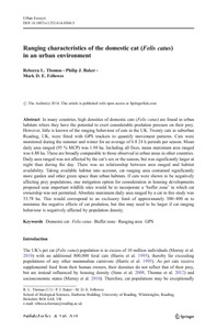 Ranging characteristics of the domestic cat (Felis catus) in an urban environment.