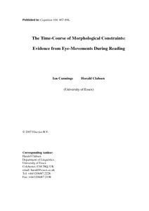 Cunnings, I. ORCID: https://orcid.org/0000-0002-5318-0186 and Clahsen, H. (2007) The time-course of morphological constraints: Evidence from eye-movements during reading. Cognition, 104 (3). pp. 476-494. ISSN 0010-0277 doi: 10.1016/j.cognition.2006.07.010