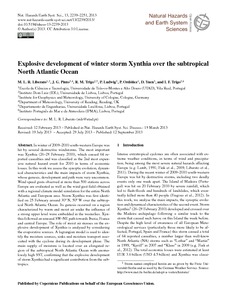 Liberato, M. L. R., Pinto, J. G., Trigo, R. M., Ludwig, P., Ordóñez, P., Yuen, D. and Trigo, I. F. (2013) Explosive development of winter storm Xynthia over the subtropical North Atlantic Ocean. Natural Hazards and Earth System Sciences, 13 (9). pp. 2239-2251. ISSN 1561-8633 doi: 10.5194/nhess-13-2239-2013