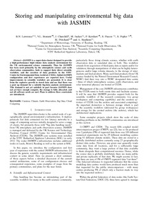 Lawrence, B. N. ORCID: https://orcid.org/0000-0001-9262-7860, Bennett, V. L., Churchill, J., Juckes, M., Kershaw, P., Pascoe, S., Pepler, S., Priitchard, M. and Stephens, A. (2013) Storing and manipulating environmental big data with JASMIN. In: IEEE Big Data, October 6-9, 2013, San Francisco.