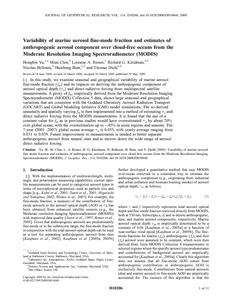 Variability of marine aerosol fine-mode fraction and estimates of anthropogenic aerosol component over cloud-free oceans from the Moderate Resolution Imaging Spectroradiometer (MODIS).
