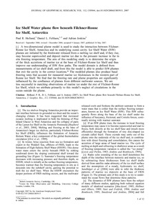 [1] A two-dimensional plume model is used to study the interaction between Filchner-Ronne Ice Shelf, Antarctica and its underlying ocean cavity. Ice Shelf Water (ISW) plumes are initiated by the freshwater released from a melting ice shelf and, if they rise, may become supercooled and deposit marine ice due to the pressure increase in the in situ freezing temperature. The aim of this modeling study is to determine the origin of the thick accretions of marine ice at the base of Filchner-Ronne Ice Shelf and thus improve our understanding of ISW flow paths. The model domain is defined from measurements of ice shelf draft, and from this ISW the model is able to predict plumes that exit the cavity in the correct locations. The modeled plumes also produce basal freezing rates that account for measured marine ice thicknesses in the western part of Ronne Ice Shelf. We find that the freezing rate and plume properties are significantly influenced by the confluence of plumes from different meltwater sources. We are less successful in matching observations of marine ice under the rest of Filchner-Ronne Ice Shelf, which we attribute primarily to this model’s neglect of circulations in the ocean outside the plume.
