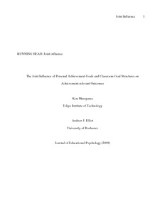 Murayama, K. and Elliot, A. J. (2009) The joint influence of personal achievement goals and classroom goal structures on achievement-relevant outcomes. Journal of Educational Psychology, 101 (2). pp. 432-447. ISSN 0022-0663 doi: 10.1037/a0014221
