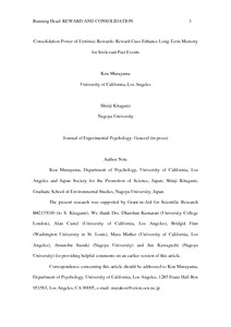 Murayama, K. and Kitagami, S. (2014) Consolidation power of extrinsic rewards: reward cues enhance long-term memory for irrelevant past events. Journal of Experimental Psychology: General, 143 (1). pp. 15-20. ISSN 1939-2222 doi: 10.1037/a0031992