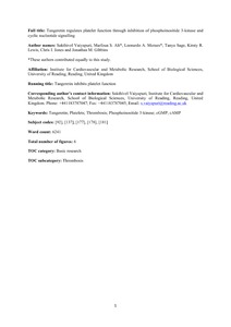 Tangeretin regulates platelet function through inhibition of phosphoinositide 3-Kinase and cyclic nucleotide signaling.