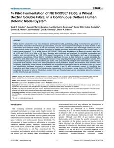 In Vitro Fermentation of NUTRIOSE® FB06, a wheat dextrin soluble fibre, in a continuous culture human colonic model system.