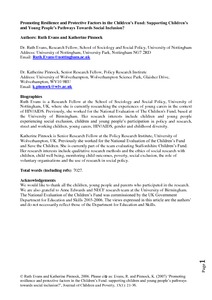 Promoting resilience and protective factors in the Children's Fund: supporting children and young people's pathways towards social inclusion?