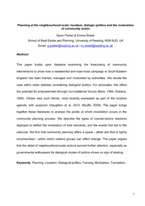 Planning at the neighbourhood scale: localism, dialogic politics and the modulation of community action.