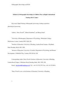 Deficits in orthographic knowledge in children poor at rapid automatized naming (RAN) tasks?
