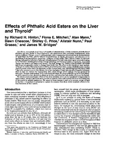 Hinton, R. H., Mitchell, F. E., Mann, A., Chescoe, D., Price, S. C., Nunn, A., Grasso, P. and Bridges, J. W. (1986) Effects of phthalic acid esters on the liver and thyroid. Environmental Health Perspectives, 70. pp. 195-210. ISSN 0091-6765