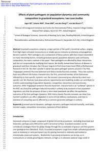 Grassland ecosystems comprise a major portion of the earth’s terrestrial surface, ranging from high-input cultivated monocultures or simple species mixtures to relatively unmanaged but dynamic systems. Plant pathogens are a component of these systems with their impact dependent on many interacting factors, including grassland species population dynamics and community composition, the topics covered in this paper. Plant pathogens are affected by these interactions and also act reciprocally by modifying their nature. We review these features of disease in grasslands and then introduce the 150-year long-term Park Grass Experiment (PGE) at Rothamsted Research in the UK. We then consider in detail two plant-pathogen systems present in the PGE, Tragopogon pratensis-Puccinia hysterium and Holcus lanata-Puccinia coronata. These two systems have very different life history characteristics: the first, a biennial member of the Asteraceae infected by its host-specific, systemic rust; the second, a perennial grass infected by a host-non-specific rust. We illustrate how observational, experimental and modelling studies can contribute to a better understanding of population dynamics, competitive interactions and evolutionary outcomes. With Tragopogon pratensis-Puccinia hysterium, characterised as an “outbreak” species in the PGE, we show that pathogen-induced mortality is unlikely to be involved in host population regulation; and that the presence of even a short-lived seed-bank can affect the qualitative outcomes of the host-pathogen dynamics. With Holcus lanata-Puccinia coronata, we show how nutrient conditions can affect adaptation in terms of host defence mechanisms, and that co-existence of competing species affected by a common generalist pathogen is unlikely.
