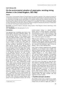 On the environmental valuation of catastrophe: revisiting mining disasters in the United Kingdom, 1851-1962.