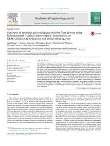 Synthesis of prebiotic galactooligosaccharides from lactose using bifidobacterial β-galactosidase (BbgIV) immobilised on DEAE-Cellulose, Q-Sepharose and amino-ethyl agarose.
