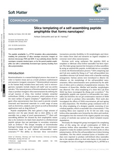 The peptide amphiphile C16-KTTKS templates silica polymerization, enabling the production of silica nanotape structures, imaged via electron microscopy (TEM and SEM). X-ray scattering shows that the nanotapes comprise stacked layers, as for the parent peptide amphiphile, but with a substantially increased layer spacing resulting from silica polymerization.