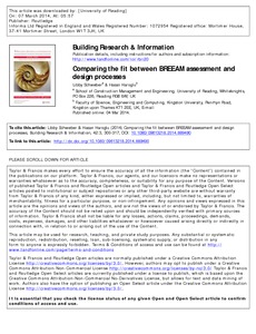 Schweber, L. ORCID: https://orcid.org/0000-0002-6069-0002 and Haroglu, H. (2014) Comparing the fit between BREEAM assessment and design processes. Building Research and Information, 42 (3). pp. 300-317. ISSN 1466-4321 doi: 10.1080/09613218.2014.889490