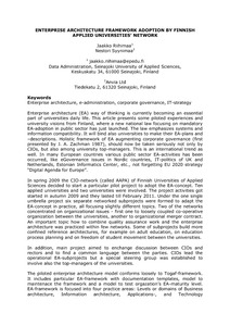 Riihimaa, J. and Syynimaa, N. (2011) Enterprise Architecture Framework adoption By Finnish applied universities' network. In: Eunis International Congress, 15 - 17 June 2011, Dublin, Ireland.