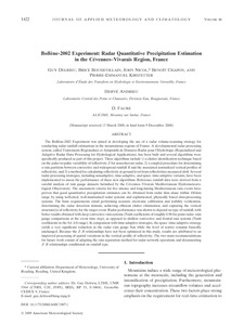 Delrieu, G., Boudevillain, B., Nicol, J., Chapon, B., Kirstetter, P.-E., Andrieu, H. and Faure, D. (2009) Bollène-2002 experiment: radar quantitative precipitation estimation in the Cévennes–Vivarais region, France. Journal of Applied Meteorology and Climatology, 48 (7). pp. 1422-1447. ISSN 1558-8424 doi: 10.1175/2008JAMC1987.1