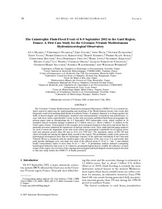 Delrieu, G., Nicol, J., Yates, E., Kirstetter, P.-E., Creutin, J.-D., Anquetin, S., Obled, C., Saulnier, G.-M., Ducrocq, V., Gaume, E., Payrastre, O., Andrieu, H., Ayral, P.-A., Bouvier, C., Neppel, L., Livet, M., Lang, M., du-Châtelet, J. P., Walpersdorf, A. and Wobrock, W. (2005) The catastrophic flash-flood event of 8–9 September 2002 in the Gard region, France: a first case study for the Cévennes–Vivarais Mediterranean Hydrometeorological Observatory. Journal of Hydrometeorology, 6 (1). pp. 34-52. ISSN 1525-7541 doi: 10.1175/JHM-400.1