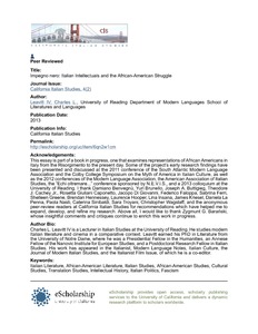 Leavitt, C. L. (2013) Impegno nero: Italian intellectuals and the African-American struggle. California Italian Studies, 4 (2). ISSN 2155-7926