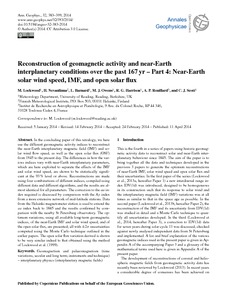 Reconstruction of geomagnetic activity and near-Earth interplanetary conditions over the past 167 yr - Part 4: Near-Earth solar wind speed, IMF, and open solar flux.