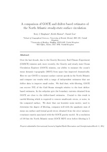 A comparison of GOCE and drifter-based estimates of the North Atlantic steady-state surface circulation.