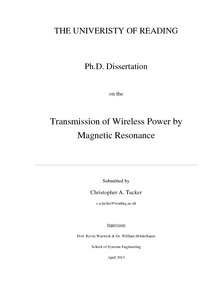 Tucker, C. A. (2013) Transmission of wireless power by magnetic resonance. PhD thesis, University of Reading. doi: 10.17864/1926.36738