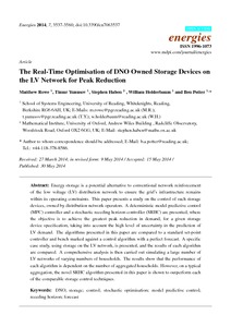 The real-time optimisation of DNO owned storage devices on the LV network for peak reduction.