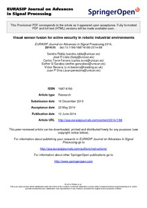 Robla, S., Llata, J. R., Torre-Ferrero, C., Sarabia, E. G., Becerra, V. and Oria, J. P. (2014) Visual sensor fusion for active security in robotic industrial environments. EURSASIP Journal on Advances in Signal Processing, 2014. 88. ISSN 1687-6180 doi: 10.1186/1687-6180-2014-88