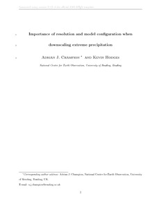 Champion, A. J. and Hodges, K. ORCID: https://orcid.org/0000-0003-0894-229X (2014) Importance of resolution and model configuration when downscaling extreme precipitation. Tellus A, 66. 23993. ISSN 1600-0870 doi: 10.3402/tellusa.v66.23993