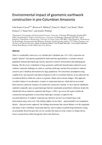 Environmental impact of geometric earthwork construction in pre-Columbian Amazonia.