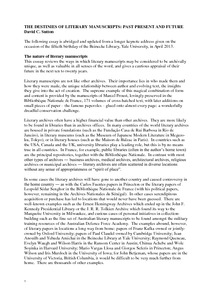 The destinies of literary manuscripts: past present and future.