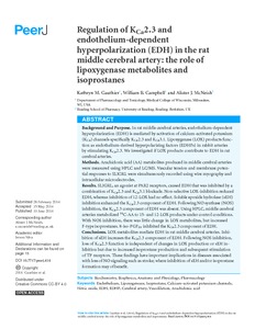 Gauthier, K. M., Campbell, W. B. and McNeish, A. J. (2014) Regulation of KCa2.3 andendothelium-dependent hyperpolarization (EDH) in the rat middle cerebral artery: the role of lipoxygenase metabolites and isoprostanes. PeerJ, 2. e414. ISSN 2167-8359 doi: 10.7717/peerj.414