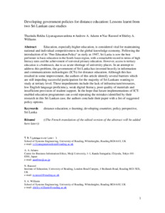 Developing government policies for distance education: lessons learnt from two Sri Lankan case studies