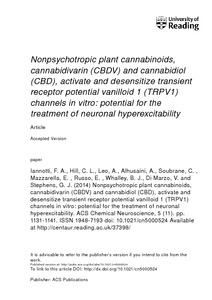 Nonpsychotropic plant cannabinoids, cannabidivarin (CBDV) and cannabidiol (CBD), activate and desensitize transient receptor potential vanilloid 1 (TRPV1) channels in vitro: potential for the treatment of neuronal hyperexcitability.