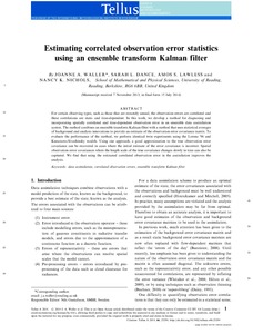 Waller, J. A., Dance, S. L. ORCID: https://orcid.org/0000-0003-1690-3338, Lawless, A. S. ORCID: https://orcid.org/0000-0002-3016-6568 and Nichols, N. K. ORCID: https://orcid.org/0000-0003-1133-5220 (2014) Estimating correlated observation error statistics using an ensemble transform Kalman filter. Tellus A, 66. 23294. ISSN 1600-0870 doi: 10.3402/tellusa.v66.23294
