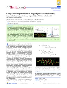 Meehan, S. J., Sankey, S. W., Jones, S. M., MacDonald, W. A. and Colquhoun, H. M. (2014) Cocrystalline copolyimides of poly(ethylene 2,6-naphthalate). ACS Macro Letters, 2014 (3). pp. 968-971. ISSN 2161-1653 doi: 10.1021/mz500357z
