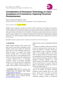 Consideration of persuasive technology on users acceptance of e-commerce: exploring perceived persuasiveness.