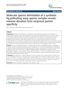 Darwell, C. T., al Beidh, S. and Cook, J. M. (2014) Molecular species delimitation of a symbiotic fig-pollinating wasp species complex reveals extreme deviation from reciprocal partner specificity. BMC Evolutionary Biology, 14. 189. ISSN 1471-2148 doi: 10.1186/s12862-014-0189-9