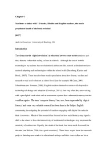 Goodwyn, A. (2013) Machines to think with? E-books, Kindles and English teachers, the much prophesied death of the book revisited. In: Goodwyn, A., Reid, L. and Durrant, C. (eds.) International perspectives on teaching English in a globalised world. National Association for the Teaching of English (NATE). Routledge, Abingdon, pp. 65-78. ISBN 9780415504461