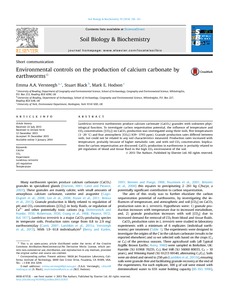 Lumbricus terrestris earthworms produce calcium carbonate (CaCO3) granules with unknown physiological function. To investigate carbon sequestration potential, the influence of temperature and CO2 concentration ([CO2]) on CaCO3 production was investigated using three soils, five temperatures(3-20 C) and four atmospheric [CO2] (439-3793 ppm). Granule production rates differed between soils, but could not be related to any soil characteristics measured. Production rates increased with temperature, probably because of higher metabolic rate, and with soil CO2 concentration. Implications for carbon sequestration are discussed. CaCO3 production in earthworms is probably related to pH regulation of blood and tissue fluid in the high CO2 environment of the soil.