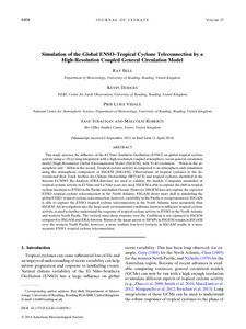 Bell, R., Hodges, K. ORCID: https://orcid.org/0000-0003-0894-229X, Vidale, P. L. ORCID: https://orcid.org/0000-0002-1800-8460, Strachan, J. and Roberts, M. (2014) Simulation of the global ENSO–Tropical cyclone teleconnection by a high-resolution coupled general circulation model. Journal of Climate, 27 (17). pp. 6404-6422. ISSN 1520-0442 doi: 10.1175/JCLI-D-13-00559.1