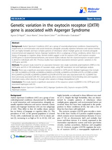 Genetic variation in the oxytocin receptor (OXTR) gene is associated with Asperger Syndrome.