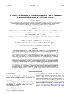 The annual-cycle modulation of meridional asymmetry in ENSO’s atmospheric response and its dependence on ENSO zonal structure.