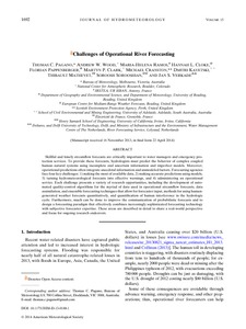 Skillful and timely streamflow forecasts are critically important to water managers and emergency protection services. To provide these forecasts, hydrologists must predict the behavior of complex coupled human–natural systems using incomplete and uncertain information and imperfect models. Moreover, operational predictions often integrate anecdotal information and unmodeled factors. Forecasting agencies face four key challenges: 1) making the most of available data, 2) making accurate predictions using models, 3) turning hydrometeorological forecasts into effective warnings, and 4) administering an operational service. Each challenge presents a variety of research opportunities, including the development of automated quality-control algorithms for the myriad of data used in operational streamflow forecasts, data assimilation, and ensemble forecasting techniques that allow for forecaster input, methods for using human-generated weather forecasts quantitatively, and quantification of human interference in the hydrologic cycle. Furthermore, much can be done to improve the communication of probabilistic forecasts and to design a forecasting paradigm that effectively combines increasingly sophisticated forecasting technology with subjective forecaster expertise. These areas are described in detail to share a real-world perspective and focus for ongoing research endeavors.