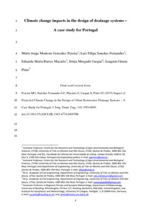 Modesto Gonzalez Pereira, M. G., Sanches Fernandes, L. F., Barros Macário, E. M., Gaspar, S. M. and Pinto, J. G. (2015) Climate change impacts in the design of drainage systems: case study of Portugal. Journal of Irrigation and Drainage Engineering, 141 (2). 05014009. ISSN 0733-9437 doi: 10.1061/(ASCE)IR.1943-4774.0000788